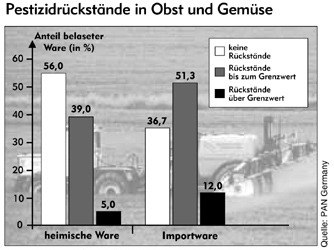 Wer reichlich Obst und Gemüse isst, stärkt seine Gesundheit. Doch Rückstände von Pflanzenschutzmitteln trüben zunehmend den Genuss. Immer wieder gelangt unzulässig hoch belastete Ware in den Handel.